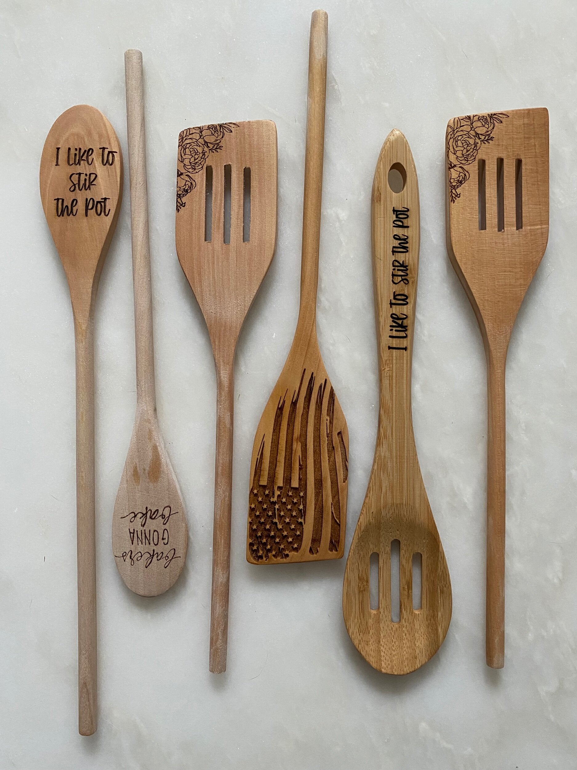 Solid birch wooden cooking spoons add a fun and unique flair to your kitchen.