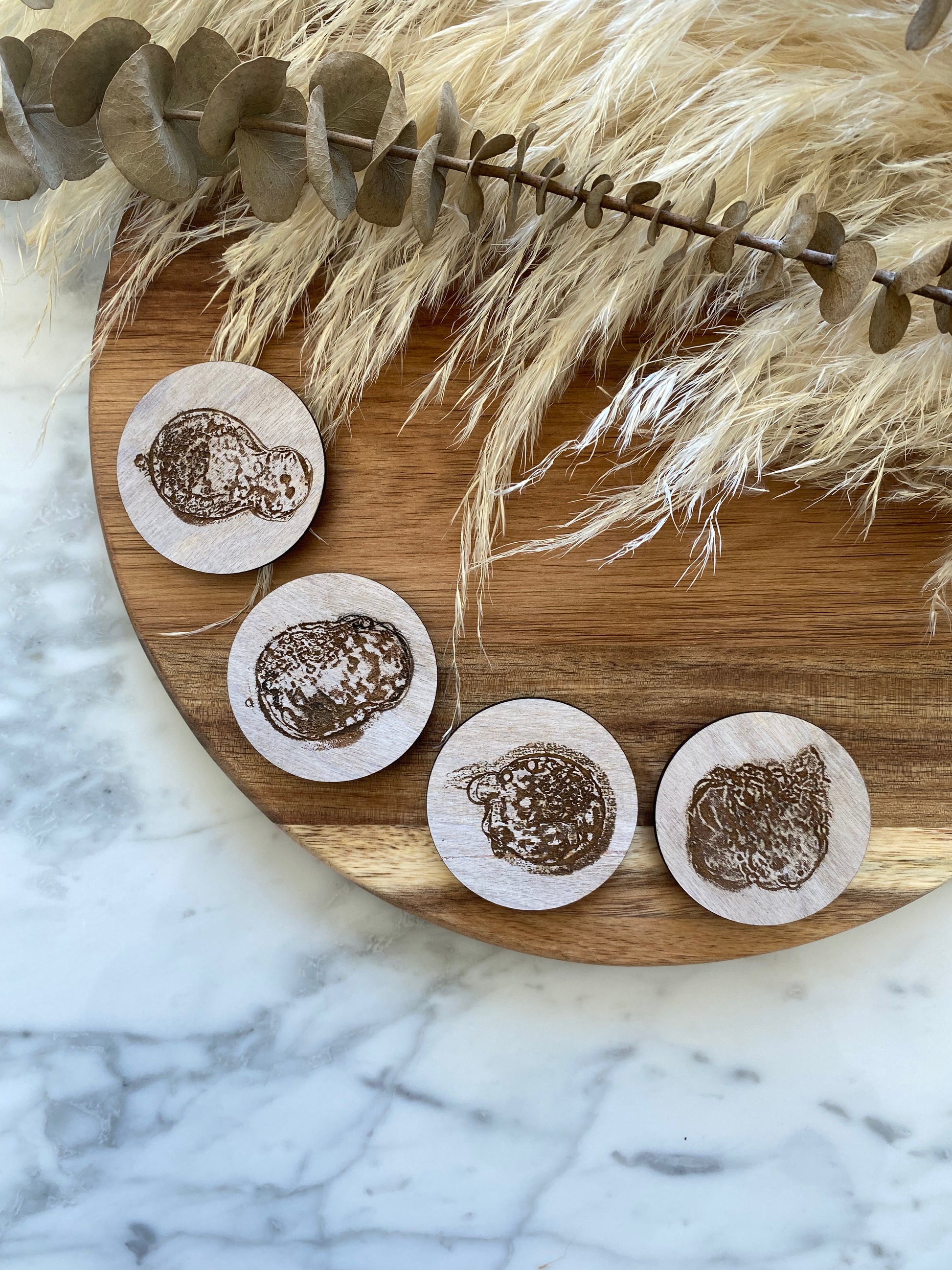 It is a perfect keepsake to celebrate that special moment of your embryo transfer. The finished piece measures 1.25” inches in diameter and is made from 1/8” thick baltic birch plywood that is whitewashed to help bring out the design and the dimension of your sweet embryo!