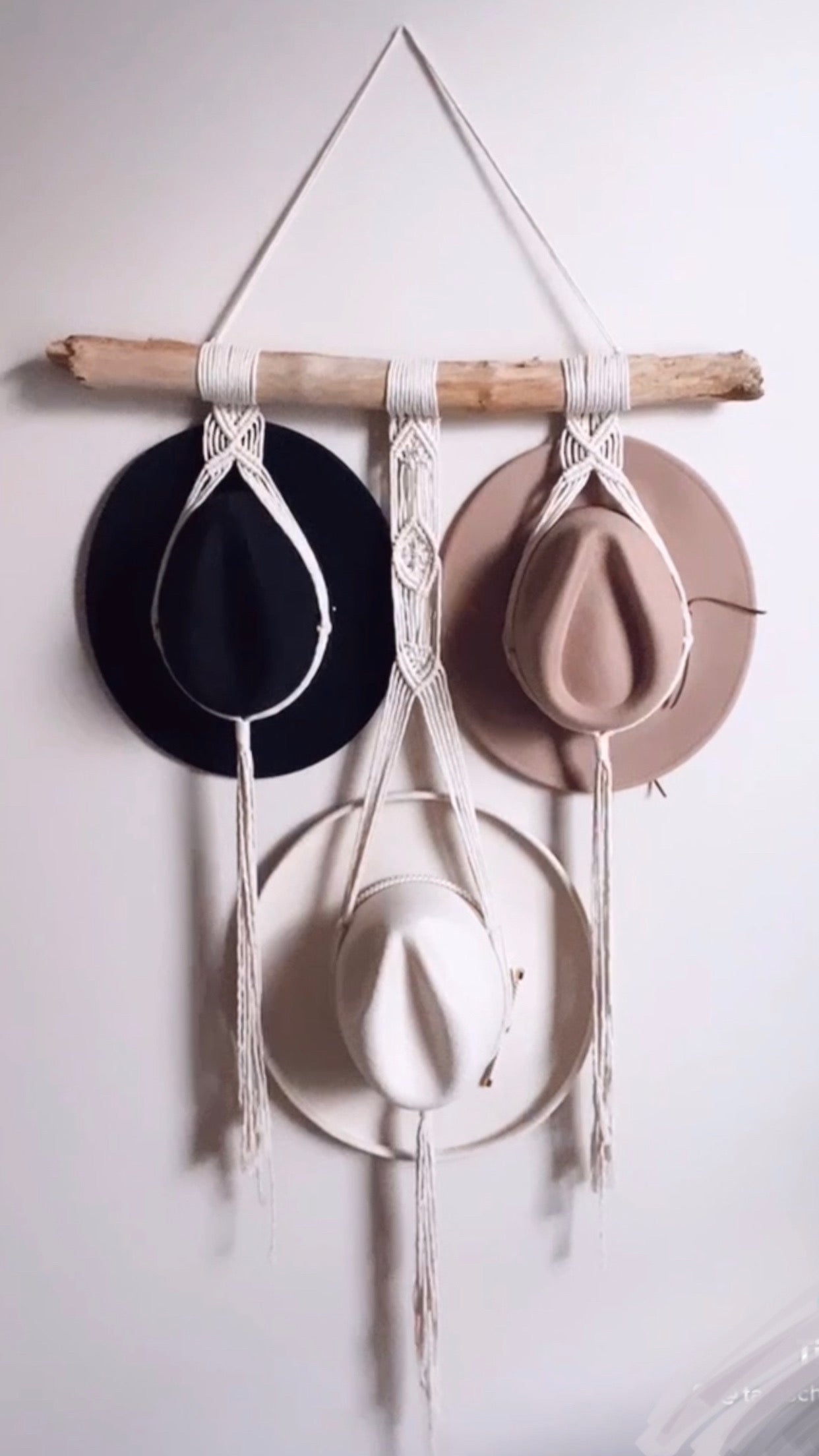 6 hat display: braided layered design. roughly 40 inches wide