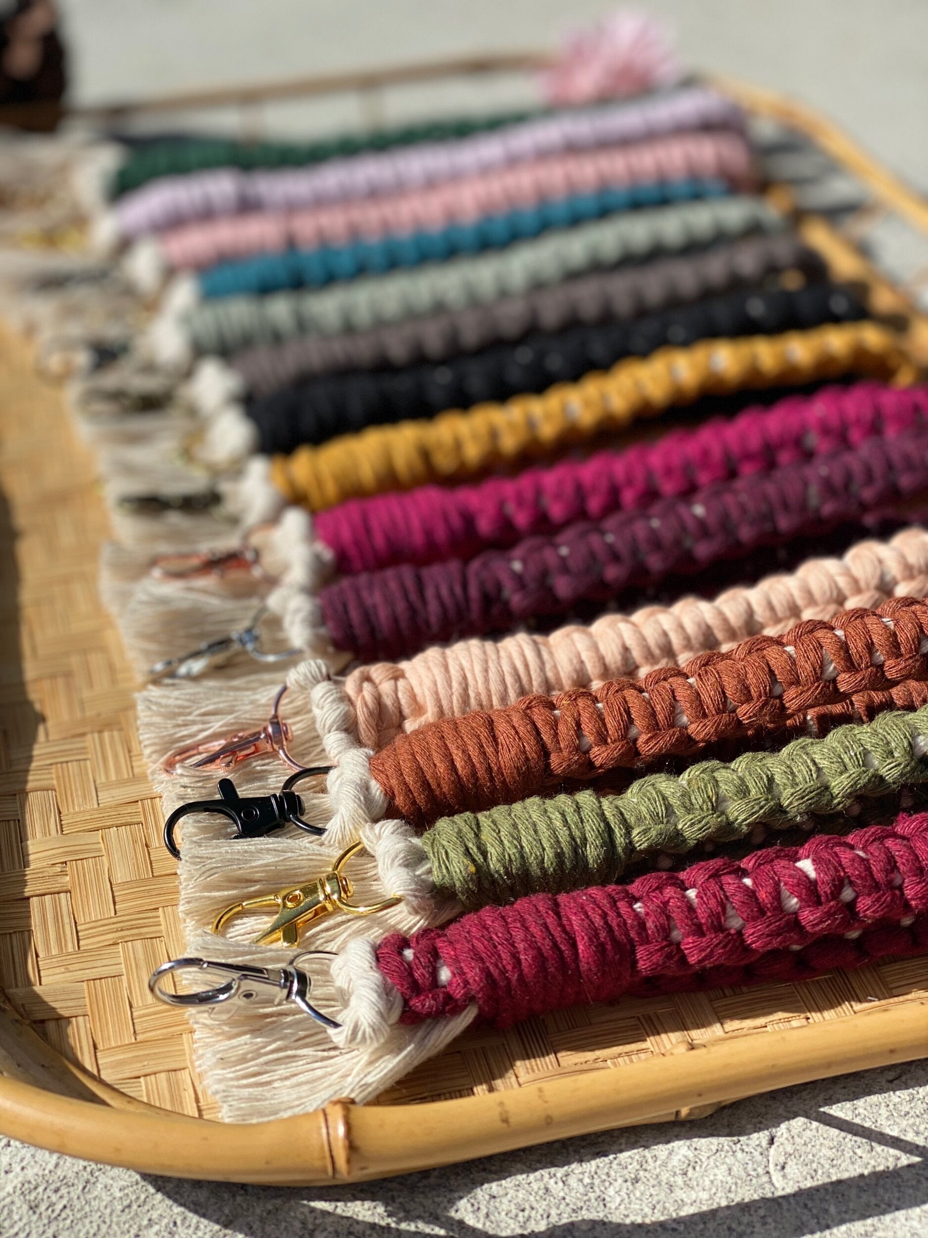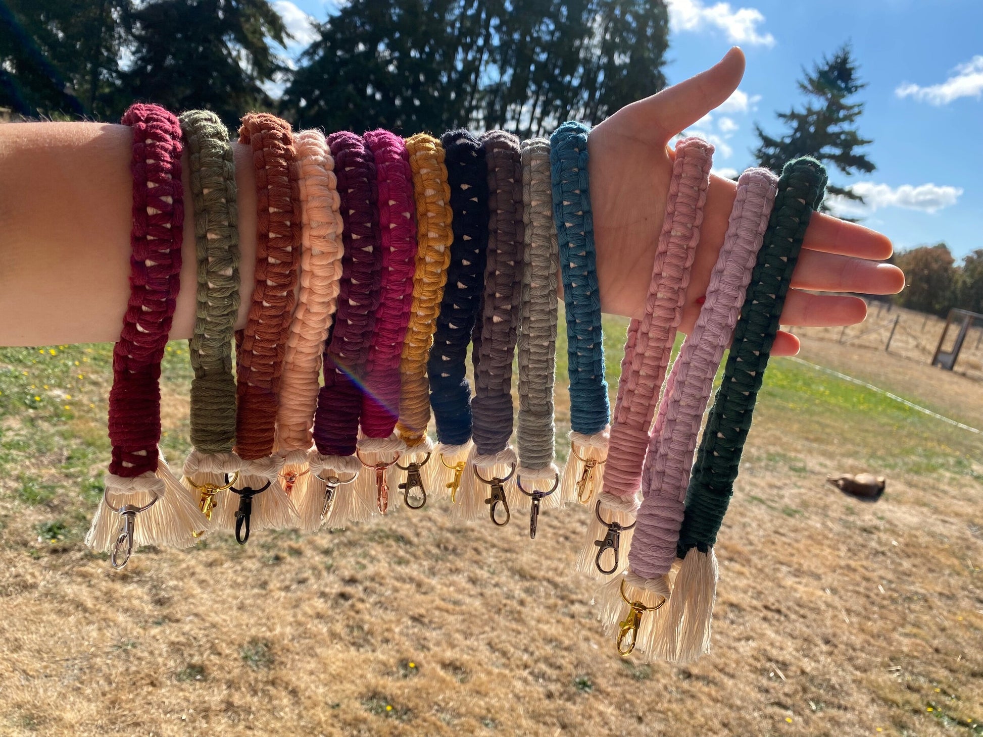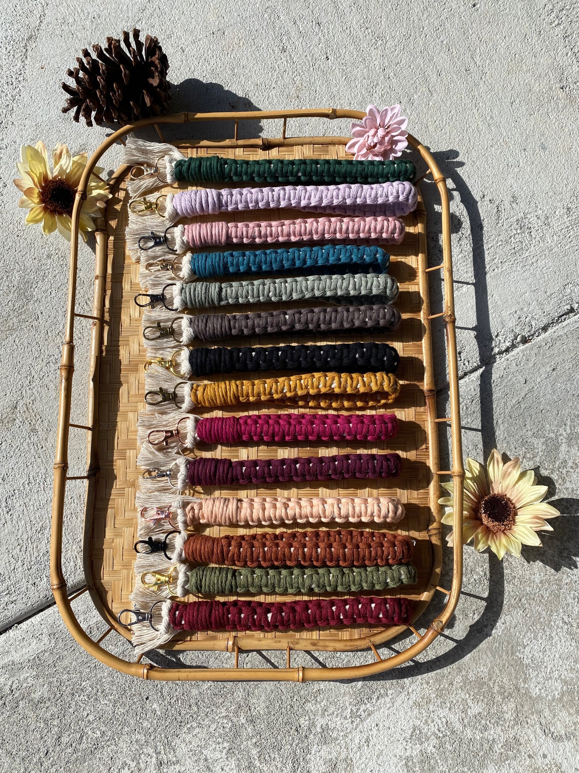 two toned wristlets are a great addition to keys, my macrame purses, clutches, or anything you would like to secure around your wrist!