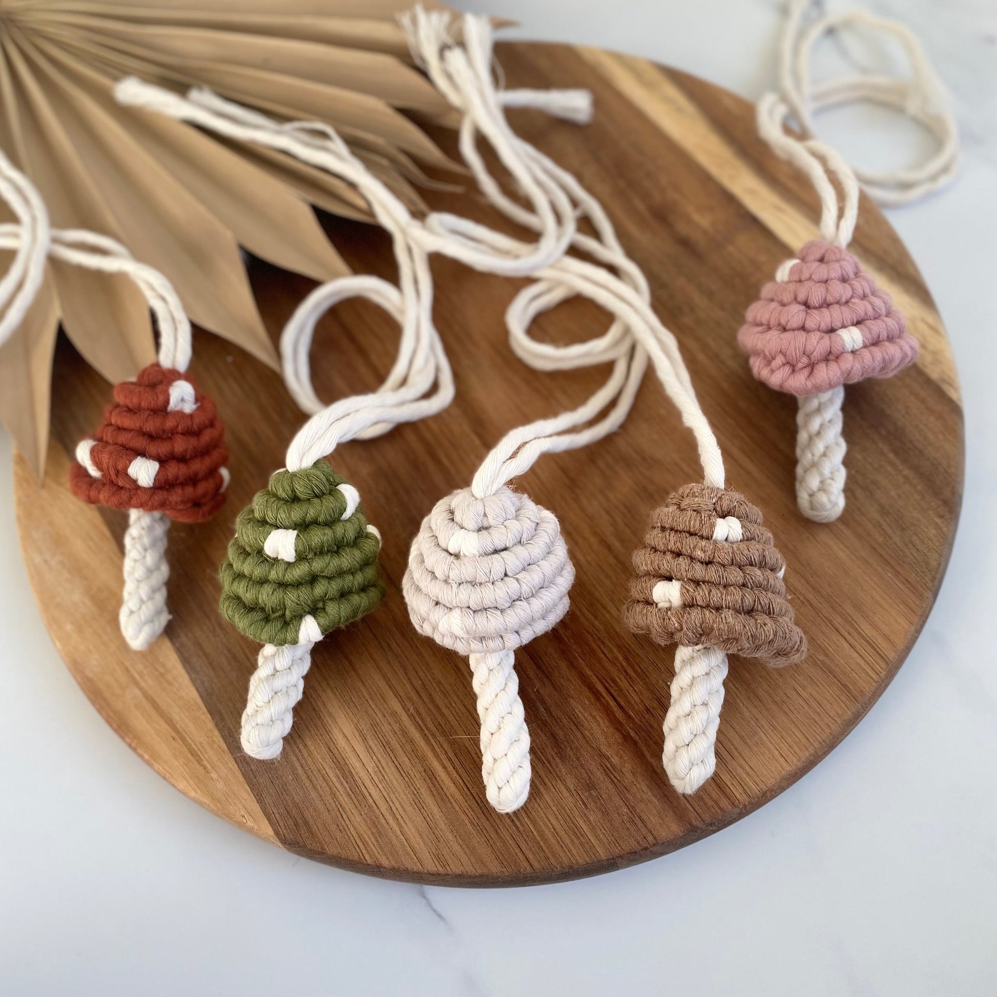Decorate your Christmas tree, rearview mirror, or your home with these adorable macramé mushrooms!